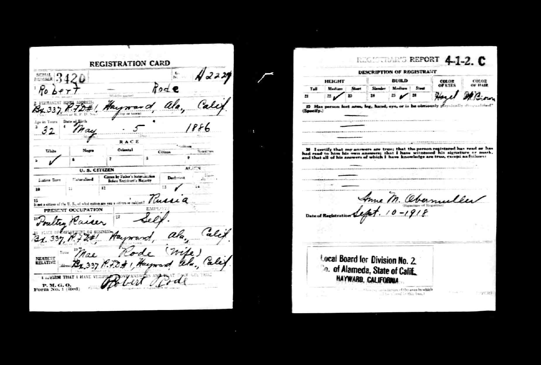 | Census | 1 Apr 1940 | Eden, Alameda, California, United States of America | Robert Rode Household, 1940 Census | 3a | ||||||||||||||||||||||||||||||||||||||||||||||||||||||||||||||||||||||||||||||||||||||||||||||||||||||||||||||||||||||||||||||||||||||||||||||||||||||||||||||