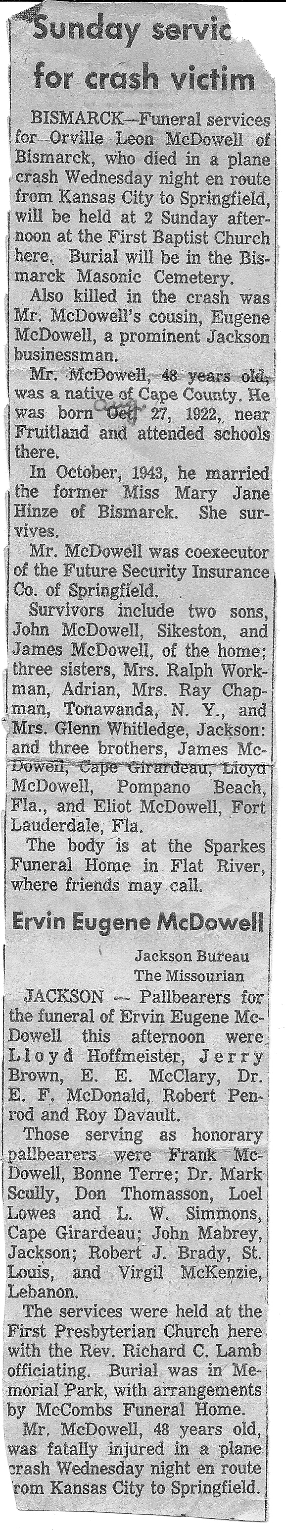| Brother | McDowell, Lloyd Clarence | 9 Sep 1914 | 10 Aug 2001 | |