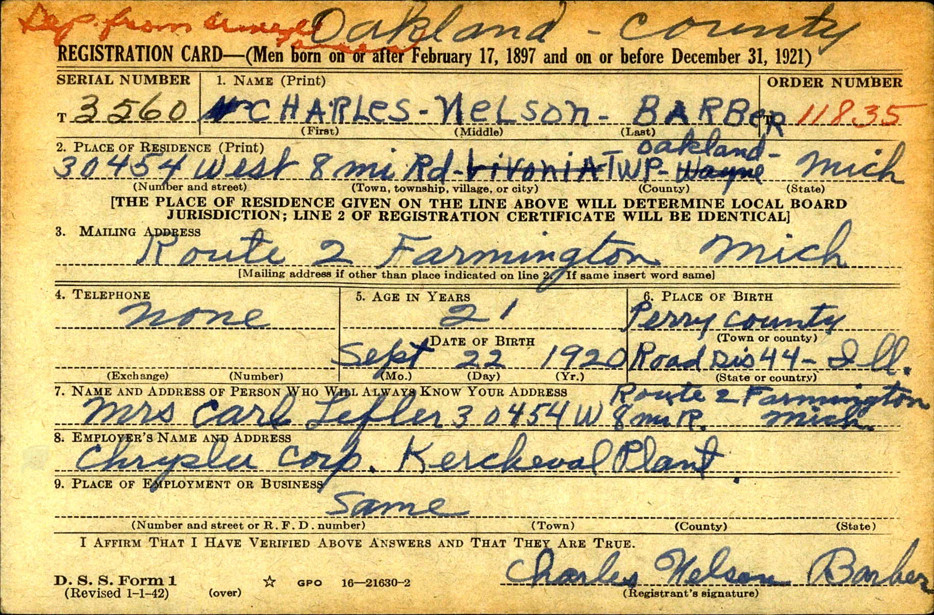 | Draft Registration | 16 Feb 1942 | Oakland, Michigan, United States of America | |||||||||||||||||||||||||||||||||||||||||||||||||||||||||||||||||||||||||||||||||||||||||||||||