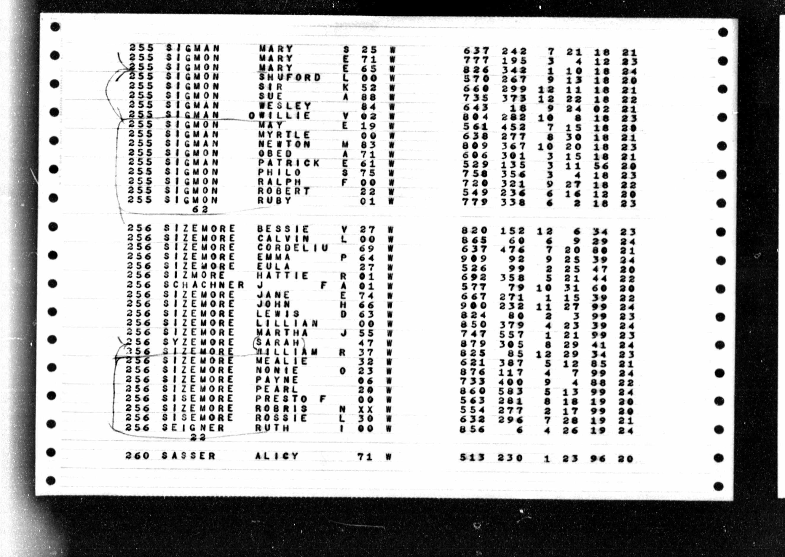 | Sigmon, Sallie M. | about 1909 | 7 Feb 1989 |