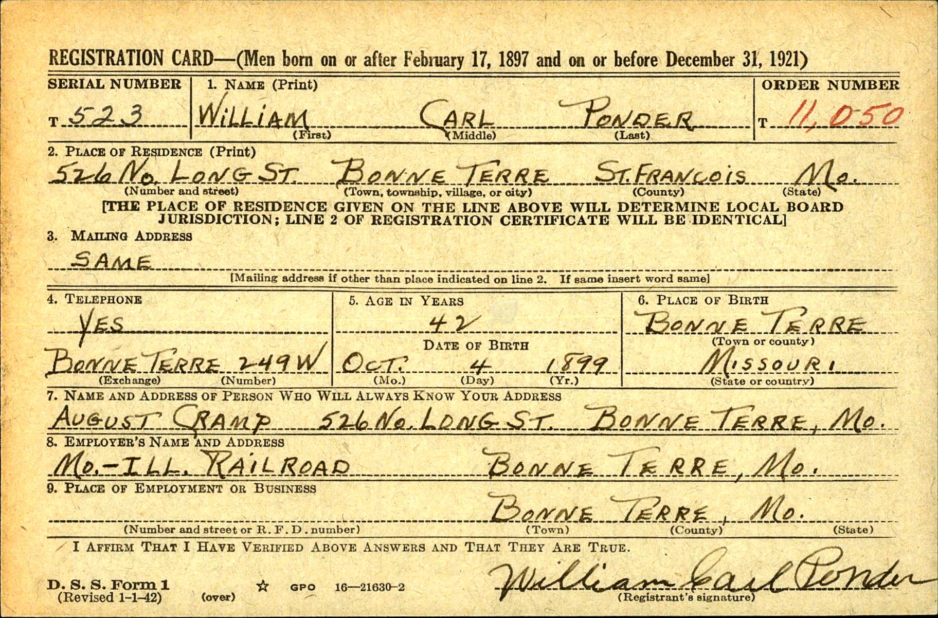 | Draft Registration | 16 Feb 1942 | Bonne Terre, Perry, St. Francois, Missouri, United States of America | ||||||||||||||||||||||||||||||||||||||||||||||||||||||||||||||||||||||||||||||||||||||||||||||||||||||||||||||||||||||||