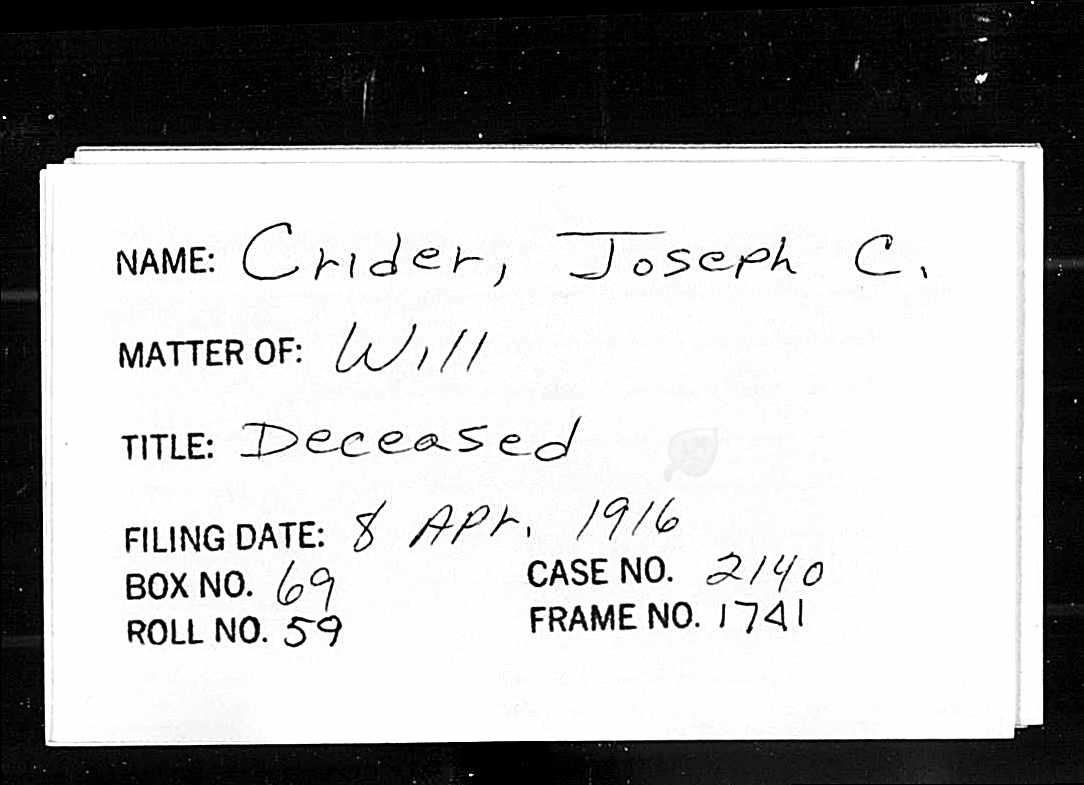 | Crider, Joseph Frederick | 28 Feb 1886 | 13 Jul 1966 |