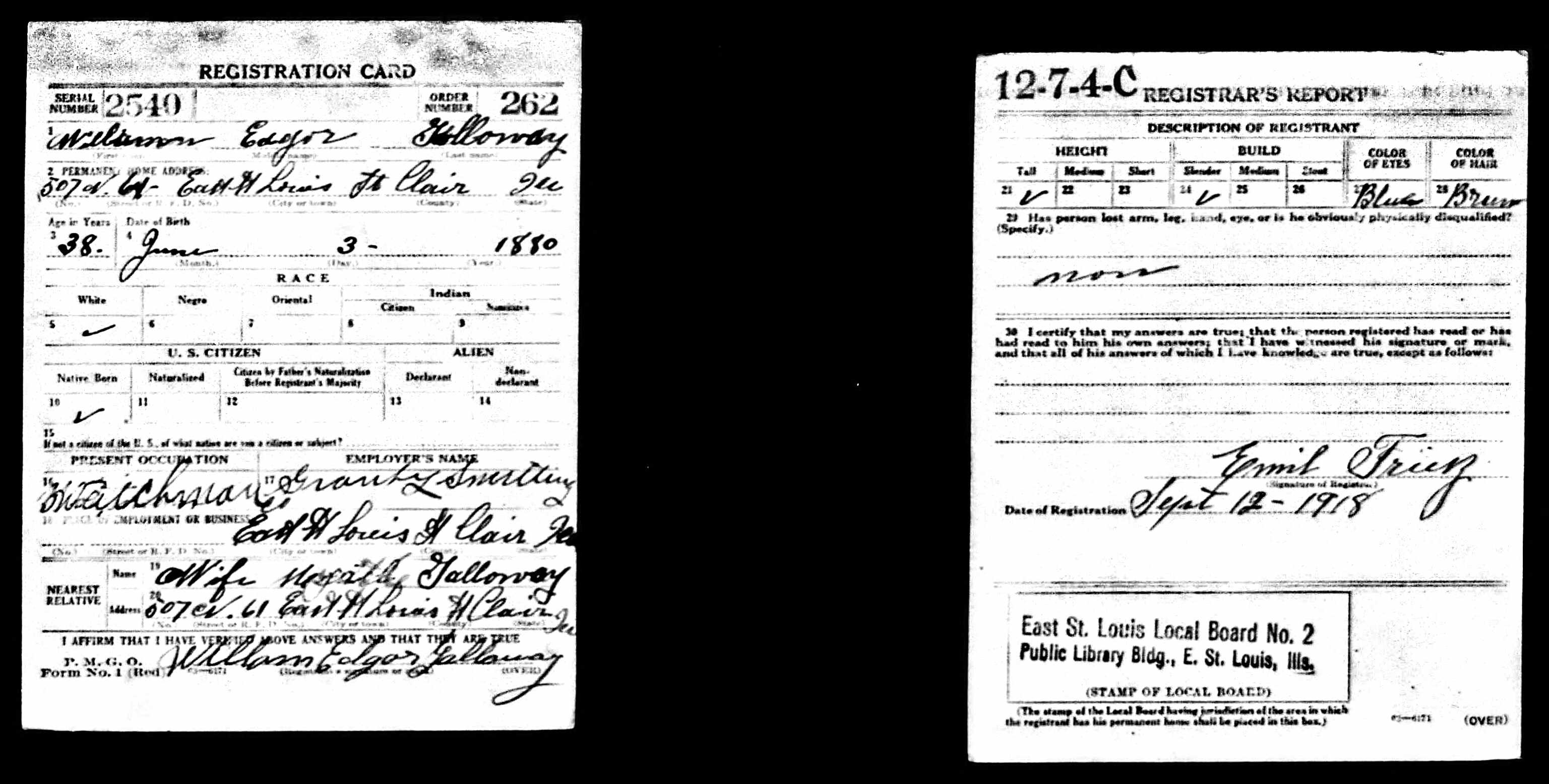 | Draft Registration | 12 Sep 1918 | East St. Louis, St. Clair, Illinois, United States of America | |||||||||||||||||||||||||||||||||||||||||||||||||||||||||||||||||||||||||||||||||||||||||||||||||||||||||||||||||||||||||||||||||||||||||||||||||||||||||||