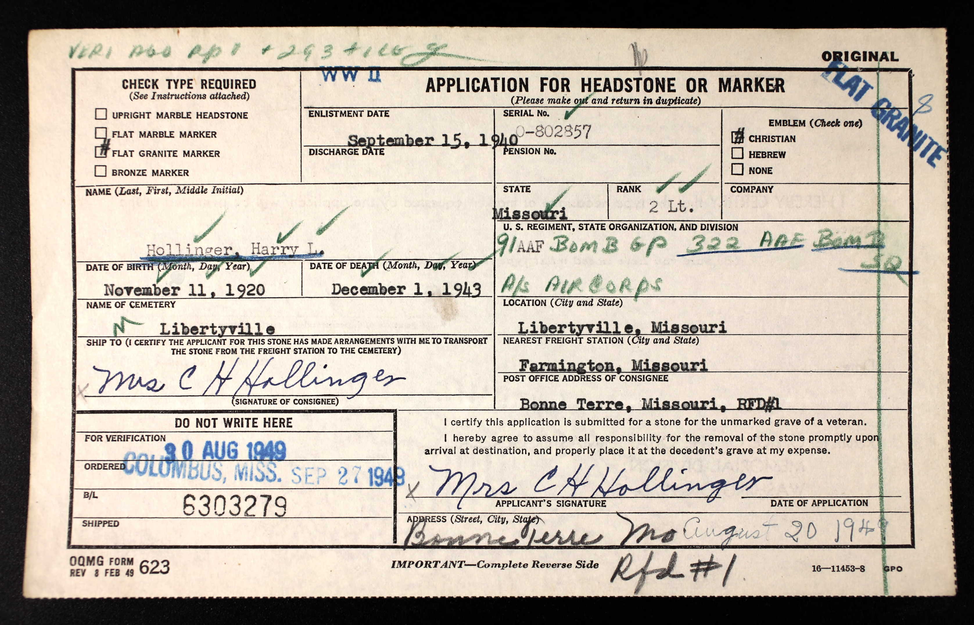 | Hollinger, Harry Leon | 11 Nov 1920 | 1 Dec 1943 | ||