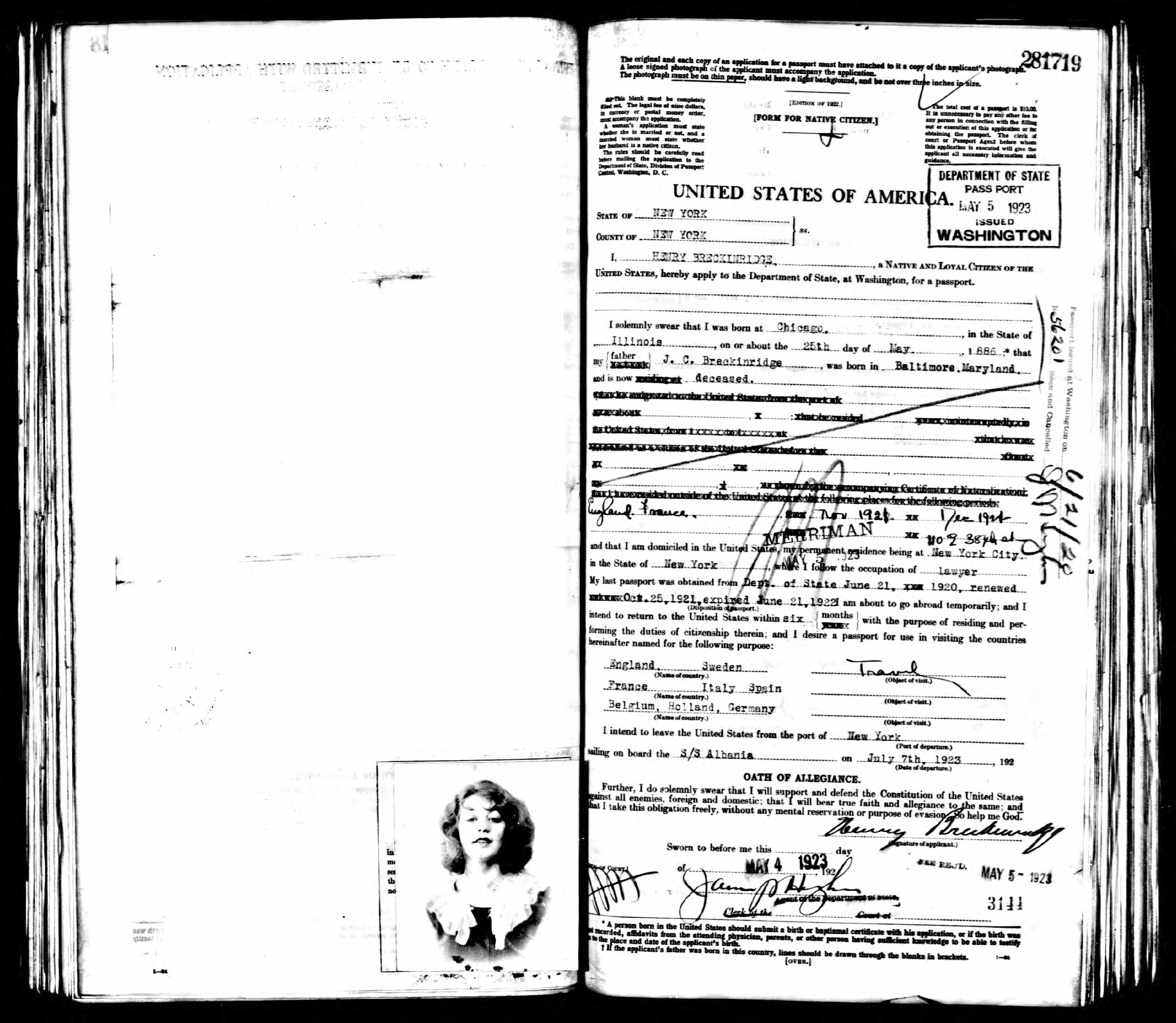 | Passport | 5 May 1923 | New York, New York, United States of America | |||||||||||||||||||||||||||||||||||||||||||||||||||||||||||||||||||||||||||||||||||||||||||||||||||||||||||||||||||||||||||||||||||||||||||||||||||||||||||