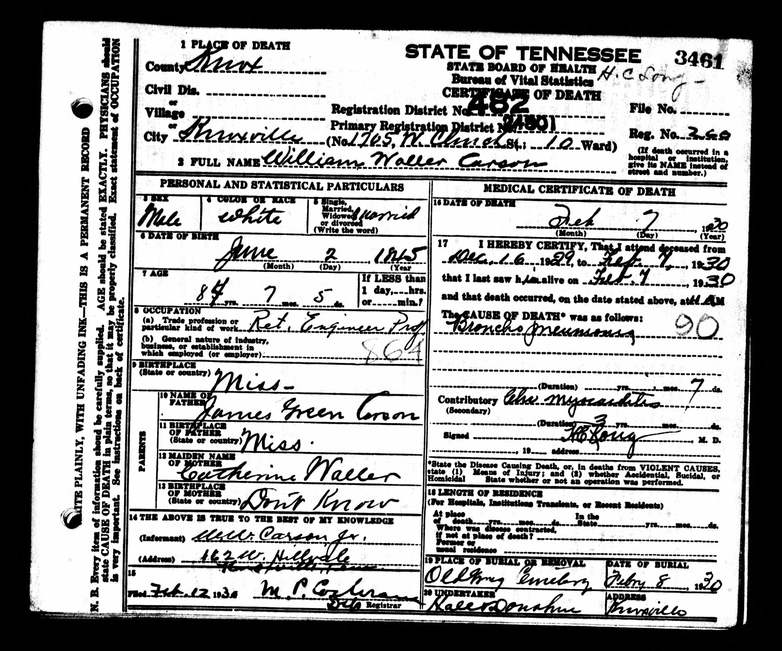 | Death | 7 Feb 1930 | Knoxville, Knox, Tennessee, United States of America | |||||||||||||||||||||||||||||||||||||||||||||||||||||||||||||||||||||||||||