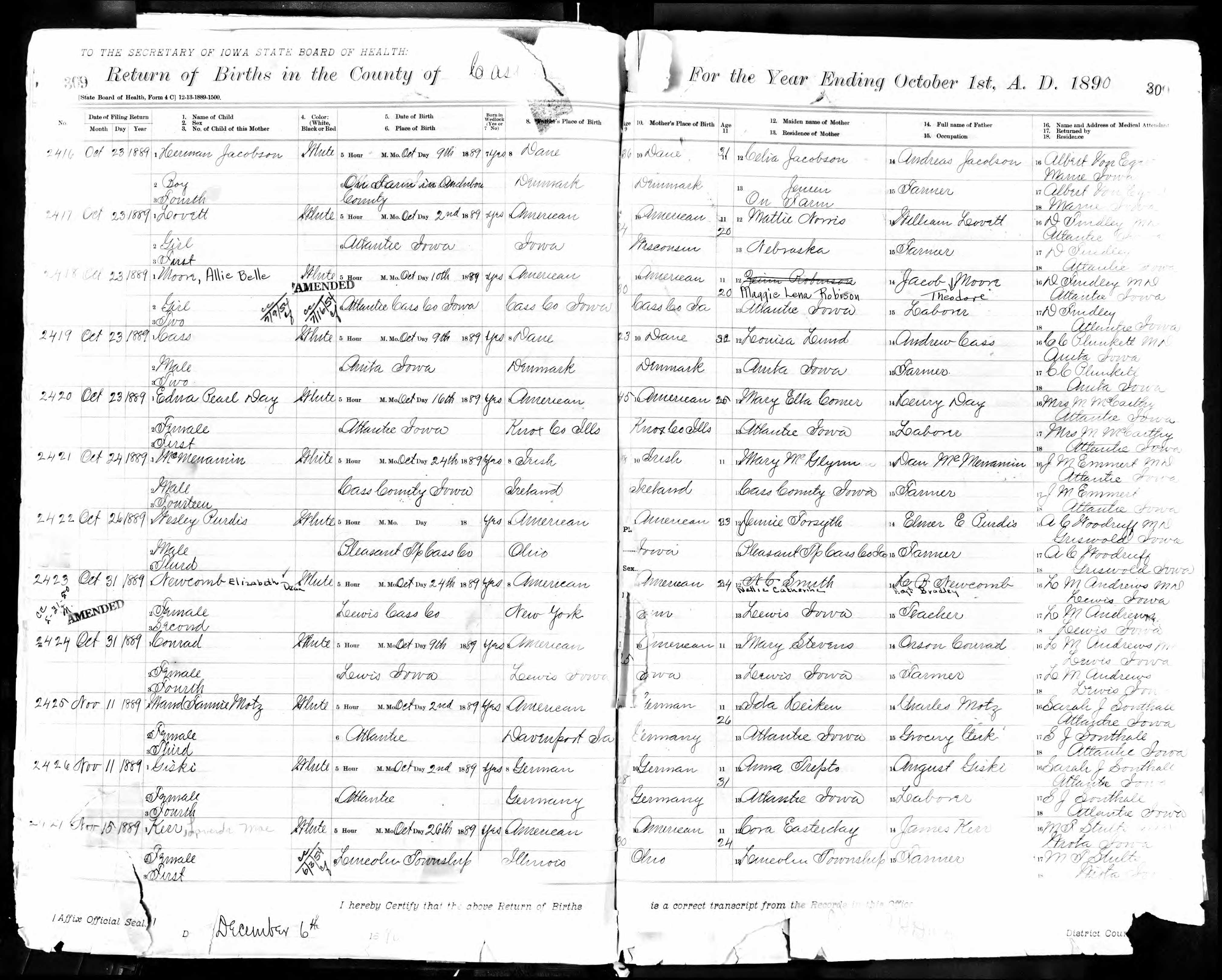 Place of birth of mother: Iowa