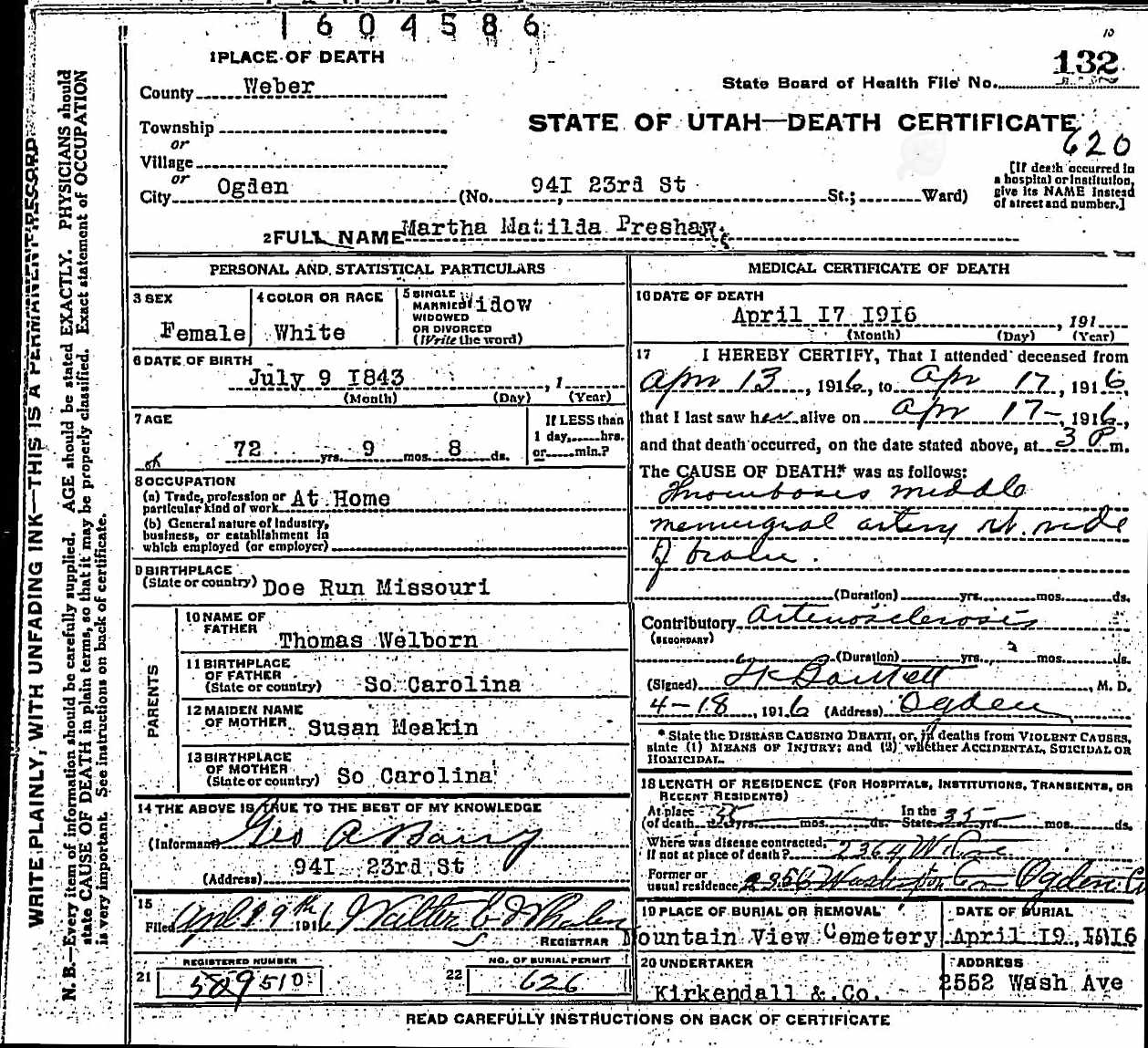 Name: Preshaw, Martha S. (widow John M. Preshaw)