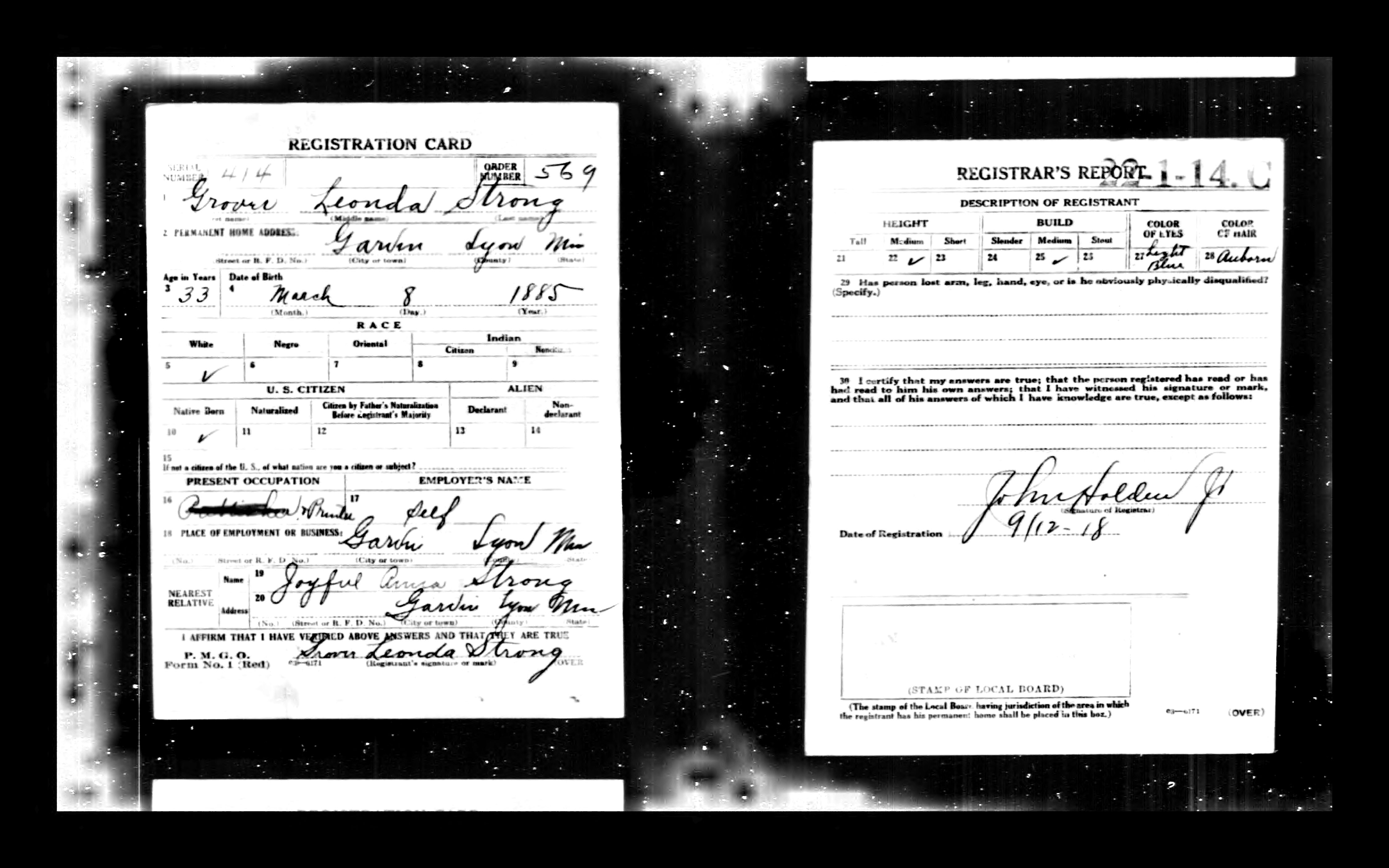 | Census | 1 Jan 1920 | Custer, Lyon, Iowa, United States of America | Grover L. Strong Household, 1920 Census | 5a | |||||||||||||||||||||||||||||||||||||||||||||||||||||||||||||||||||||||||||||||||||||||||||||||||||||||||||||||||||||||||||||||||||||||||||||||