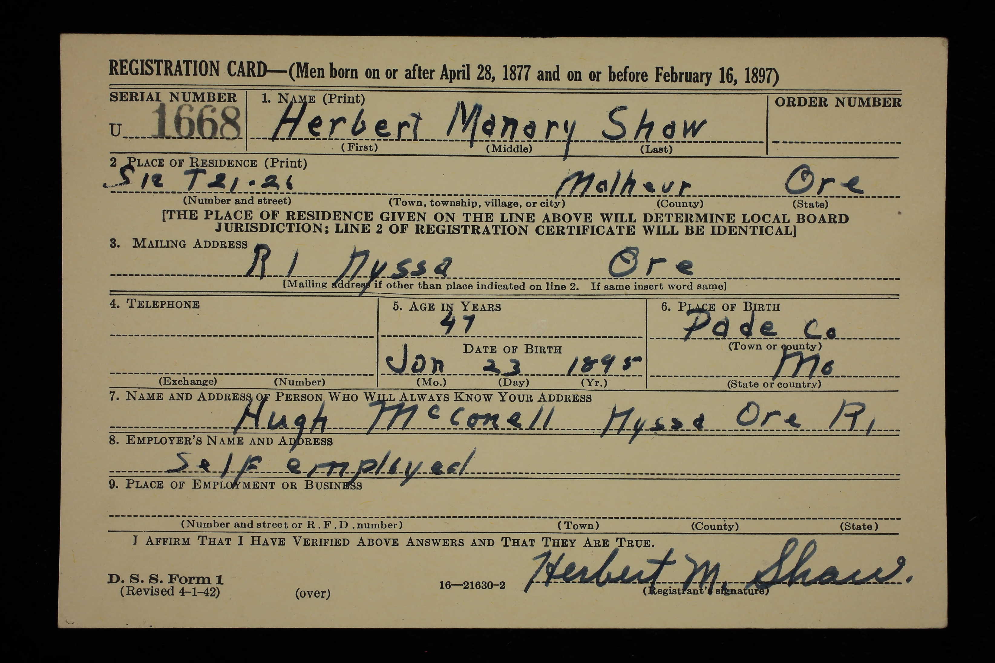 | Draft Registration | about 1942 | Malheur, Oregon, United States of America | ||||||||||||||||||||||||||||||||||||||||||||||||||||||||||||||||||||||||||||||||||||||||||||||||||||||||||||||||||||||||||||||||||||||||||||