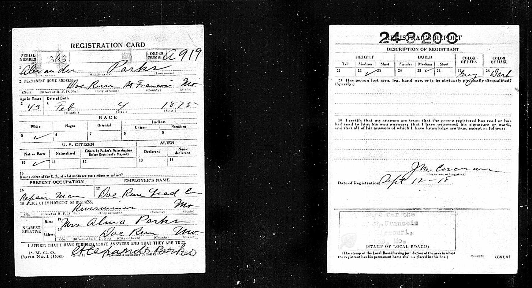 | Draft Registration | 12 Sep 1918 | Farmington, Saint Francois, St. Francois, Missouri, United States of America | ||||||||||||||||||||||||||||||||||||||||||||||||||||||||||||||||||||||||||||||||||||||||||||||||||||||||||||||||||||||||||||||||||||||||||||||||||||||