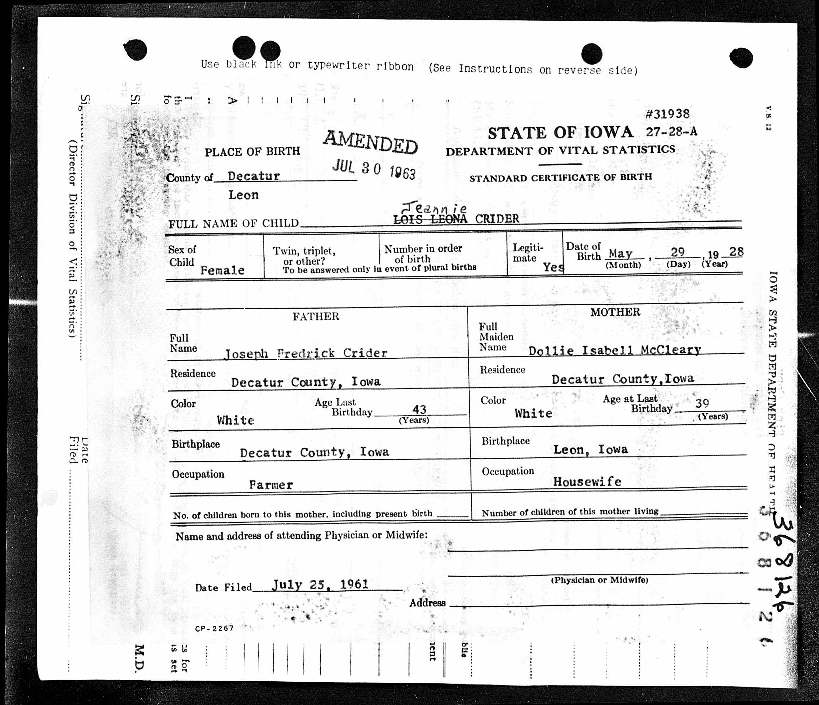 | Birth Name | Crider, Lois Jean Hamilton |