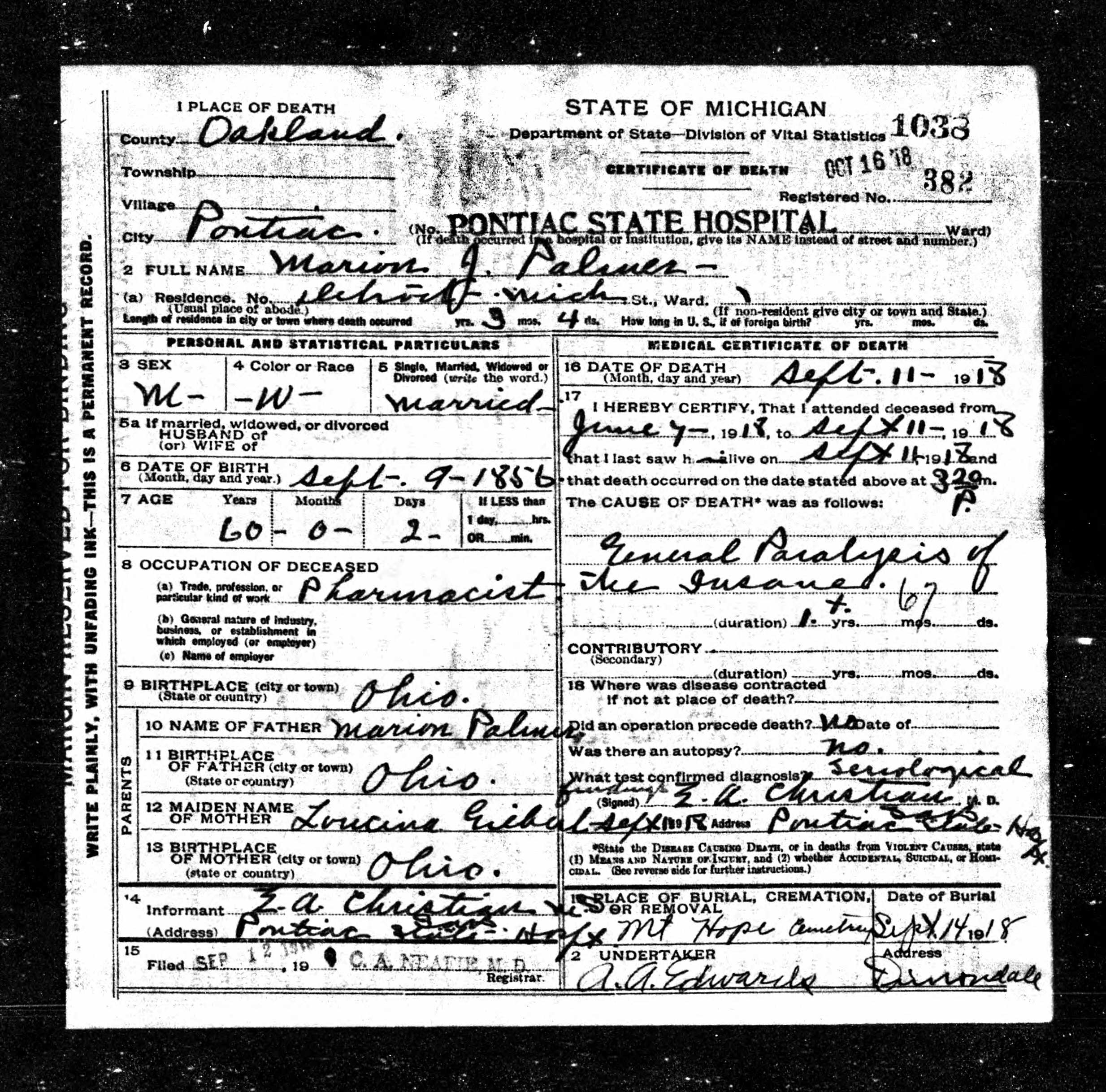 | Death | 11 Sep 1918 | Pontiac, Oakland, Michigan, United States of America | ||