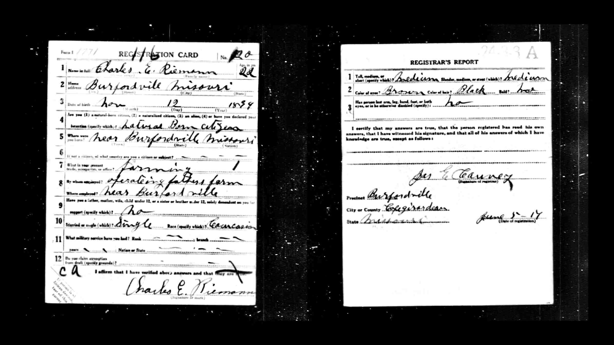 | Draft Registration | 5 Jun 1917 | Burfordville, Cape Girardeau, Missouri, United States of America | ||||||||||||||||||||||||||||||||||||||||||||||||||||||||||||||||||||||||||||||||||||||||||||||||||||||||||||||||||||||||||||||||||||||||||||