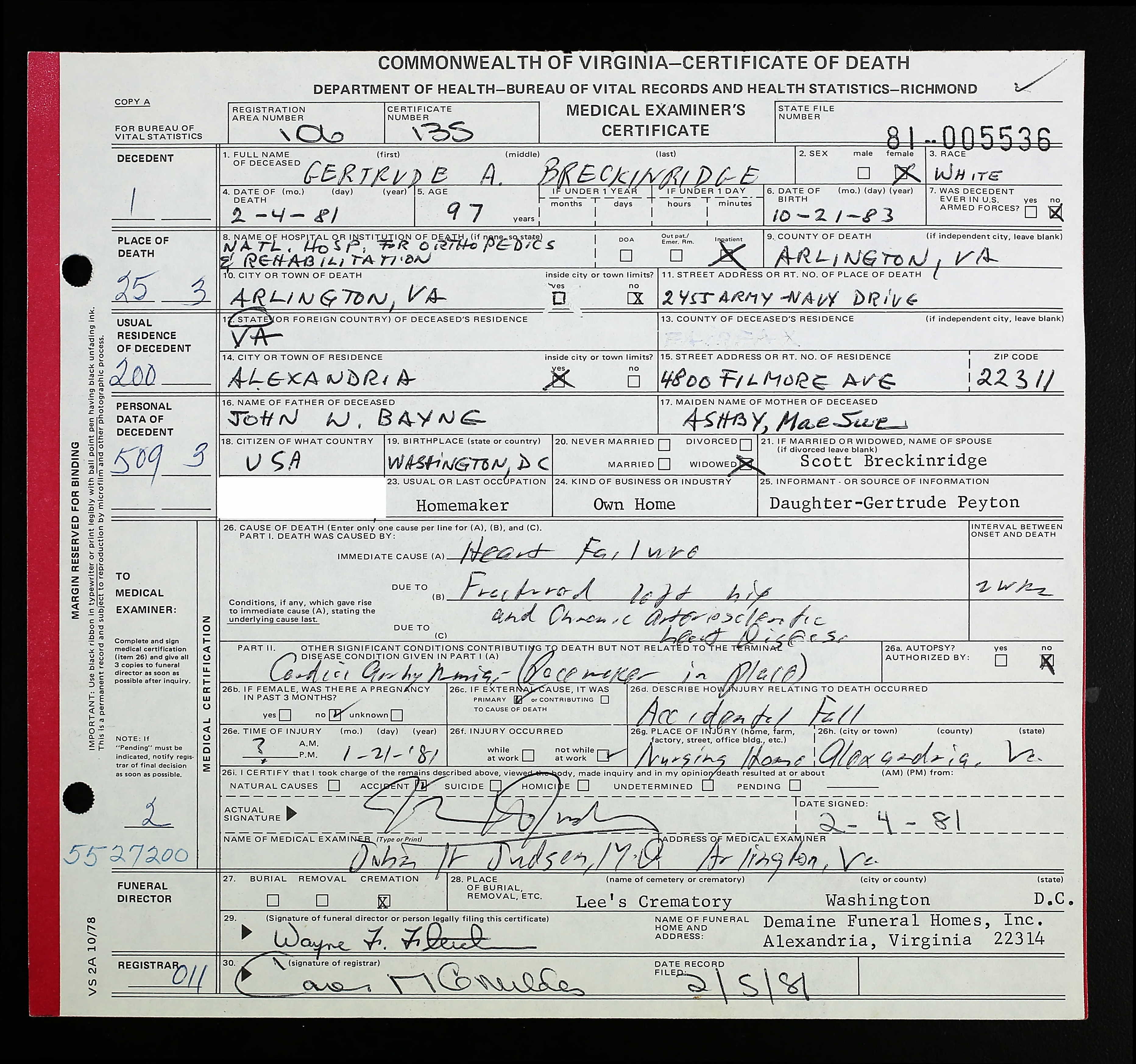 | Death | 4 Feb 1981 | National Hospital for Orthopedics and Rehabilitation, Arlington, Virginia, United States of America | ||||||||||||||||||||||||||||||||||||||||||||||||||||||||||||||||||||||||||||||||||||||||||||||||||||||||||||||||||||||||||||||||||