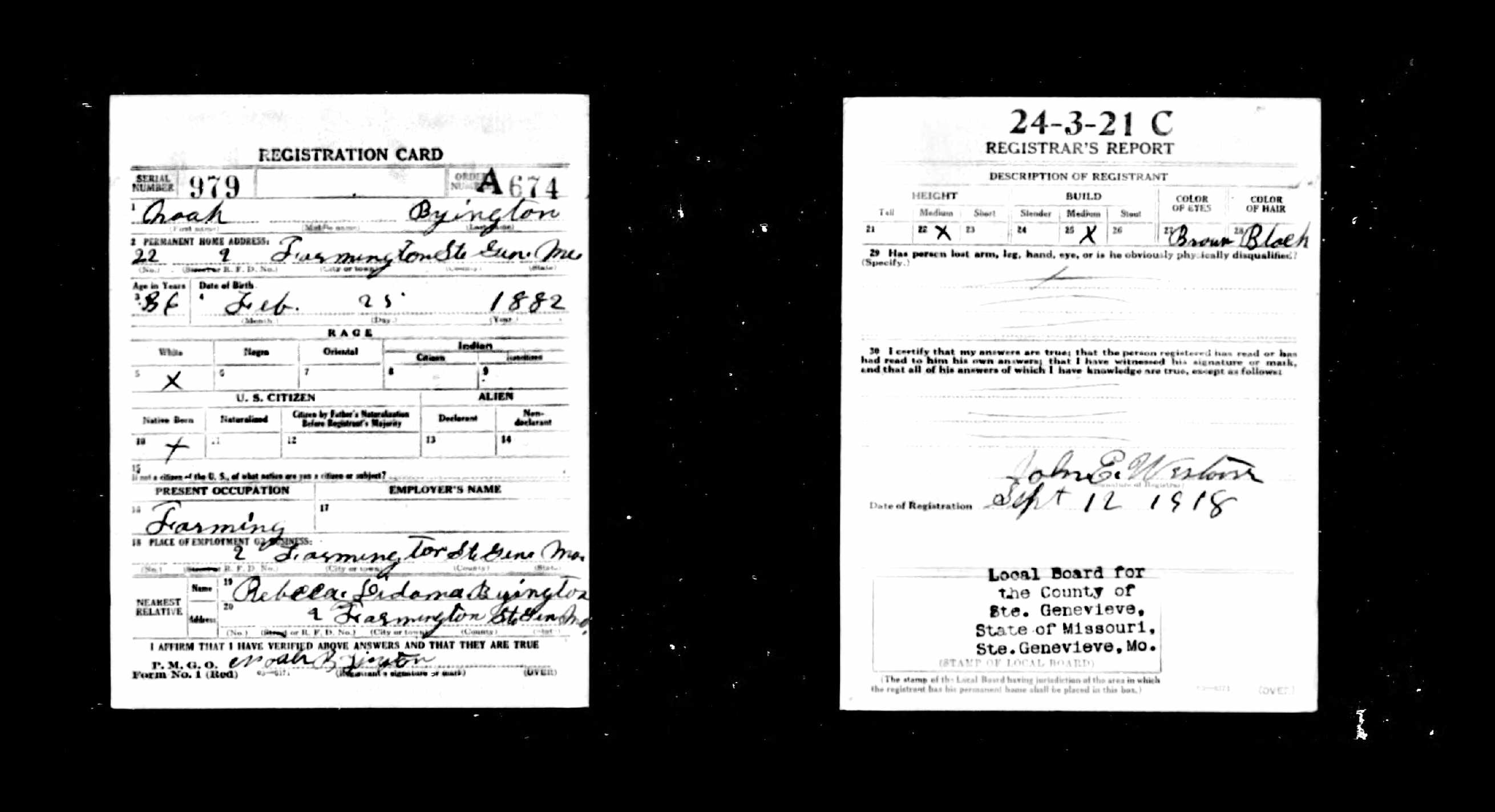 | Draft Registration | 12 Sep 1918 | Ste. Genevieve, Ste. Genevieve, Ste. Genevieve, Missouri, United States of America | |||||||||||||||||||||||||||||||||||||||||||||||||||||||||||||||||||||||||||||||||||||||||||||||||||||||||||||||||||||||||||||||||||||||||||||||||||||||||||