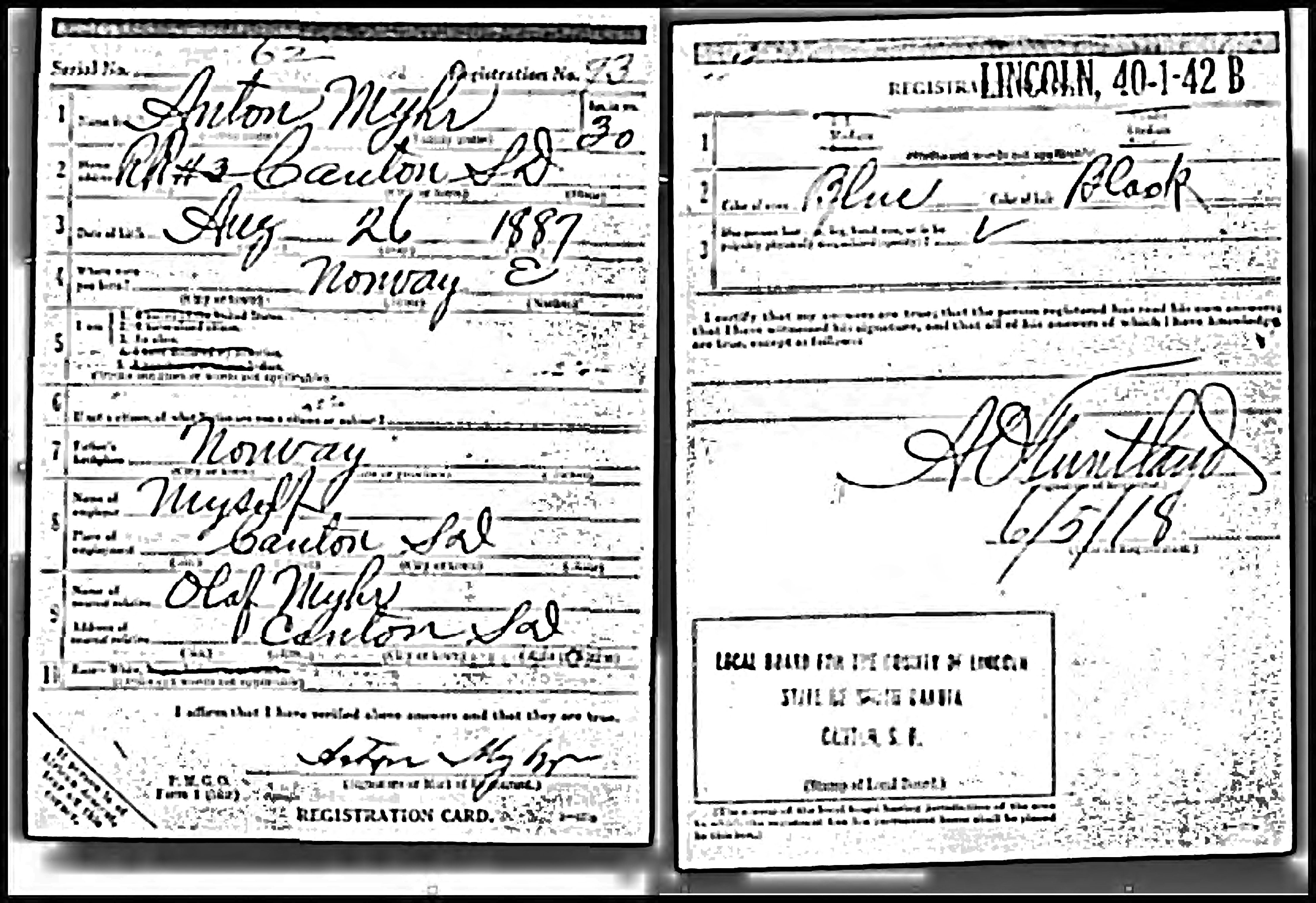 | Draft Registration | 5 Jun 1917 | Lincoln, South Dakota, United States of America | ||