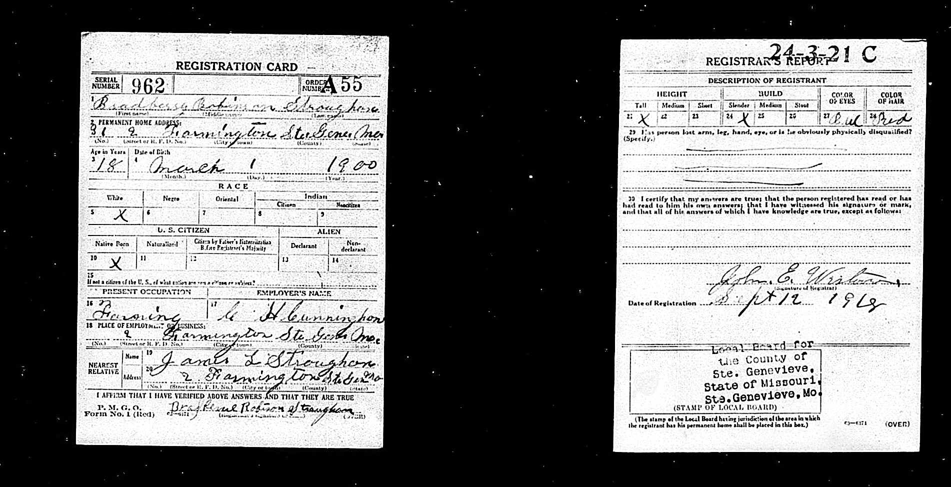 | Draft Registration | 12 Sep 1918 | Ste. Genevieve, Ste. Genevieve, Ste. Genevieve, Missouri, United States of America | ||||||||||||||||||||||||||||||||||||||||||||||||||||||||||||||||||||||||||||||||||||||||||||||||||||||||||||||||||||||||||||||||||||||||||||