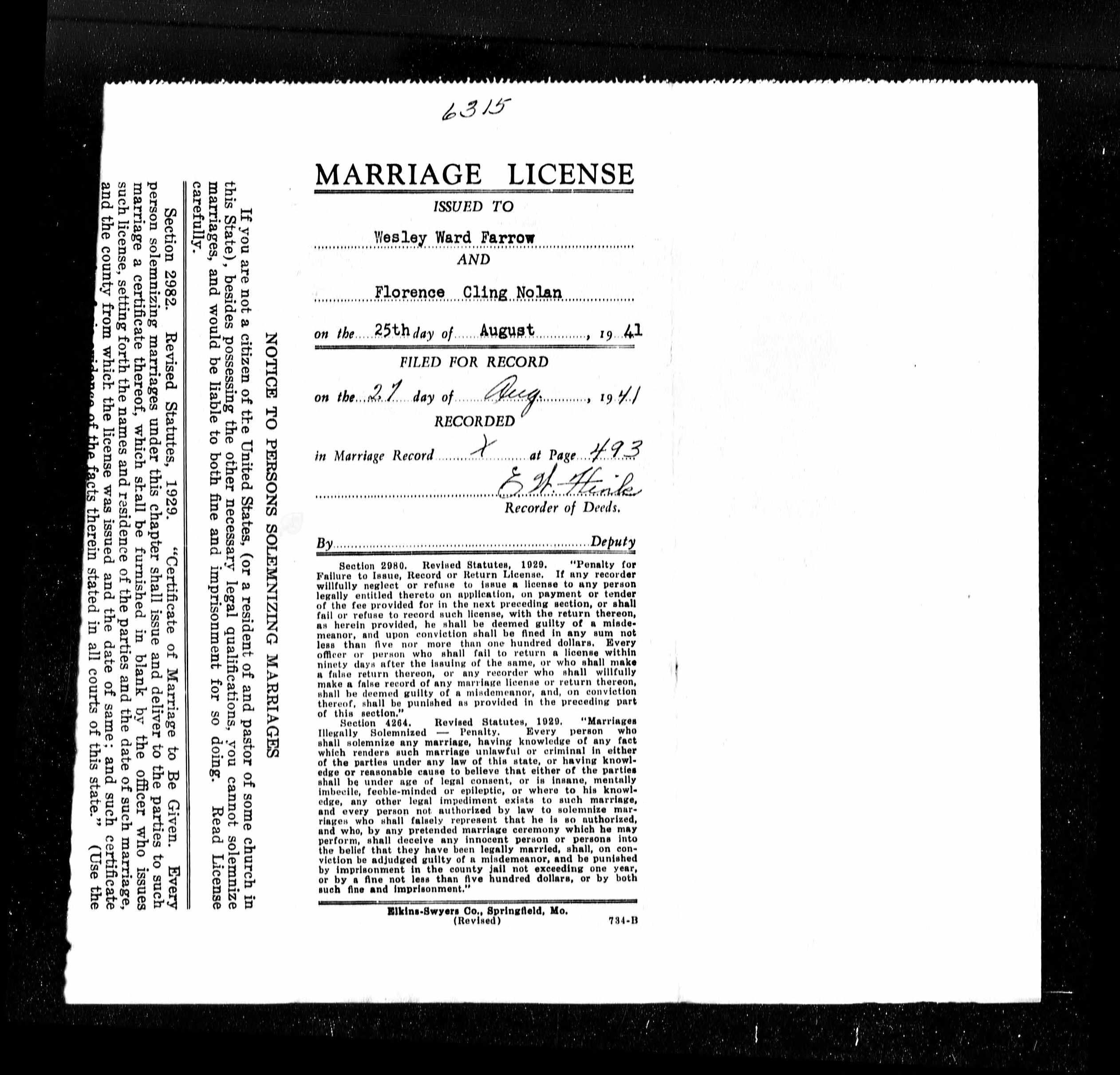 Family of Farrow, Wesley Ward and Nolan, Florence Cling