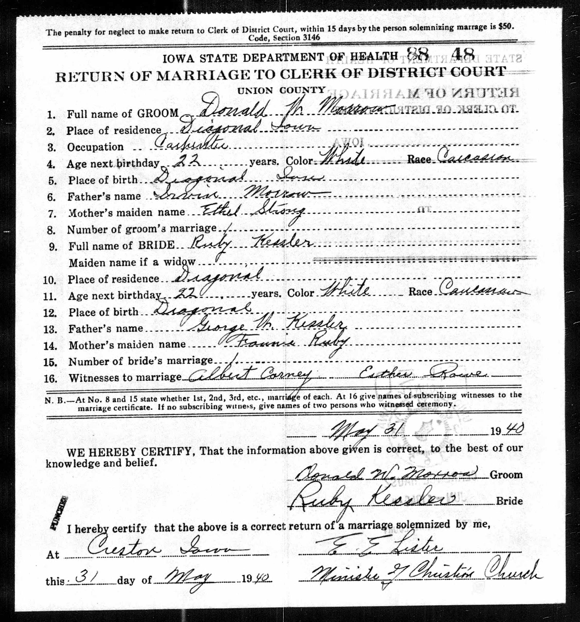 Family of Morrow, Donald Wayne and Kessler, Ruby Serena