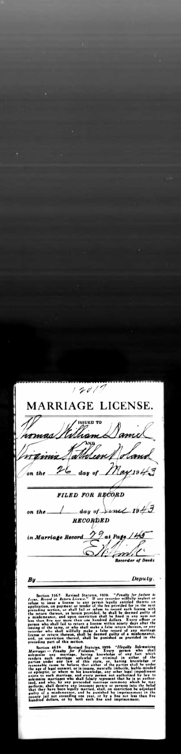 | Married | Husband | Daniel, Thomas William Sr. ( * 23 Nov 1919 + 7 Mar 1966 ) | |||||||||||||||