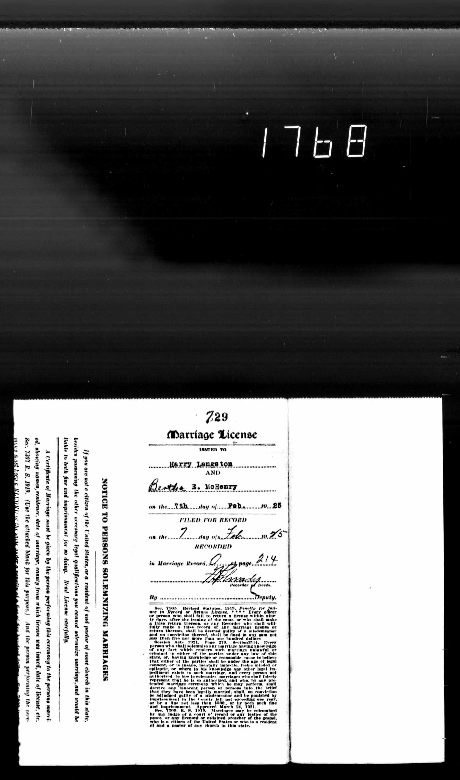| Married | Husband | Langston, Harry ( * 31 Jan 1906 + 3 May 1978 ) | |||||||||||||