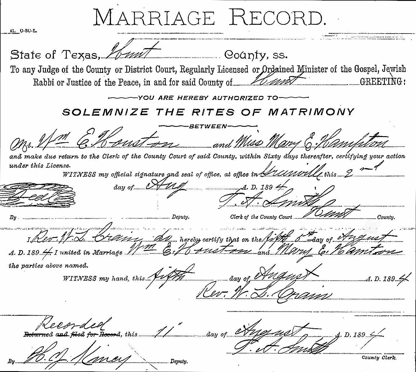 Family of Houston, William Edward and Hampton, Mary Etta