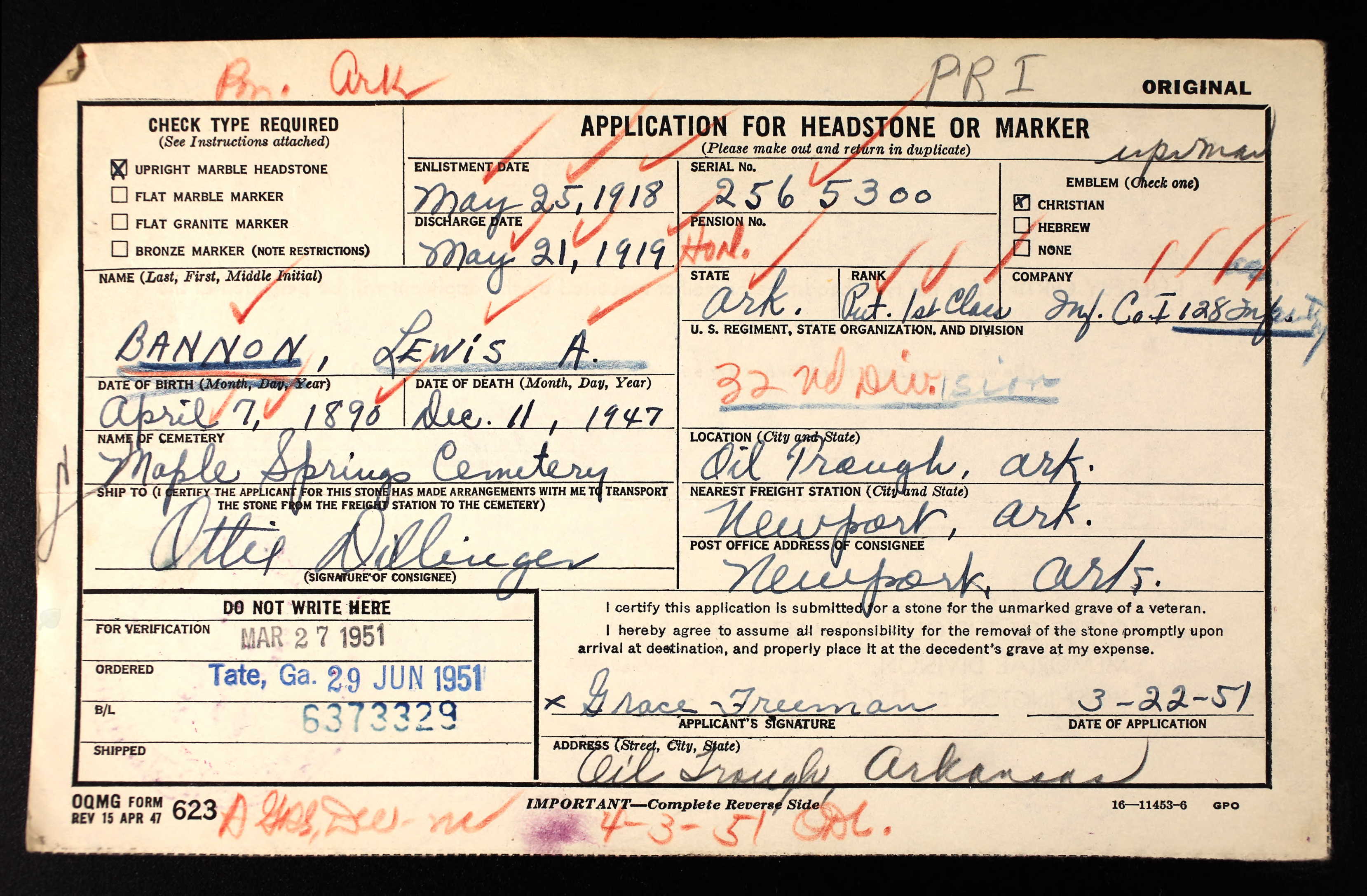 | Bannon, Lewis Alexander | 7 Apr 1890 | 11 Dec 1947 | ||