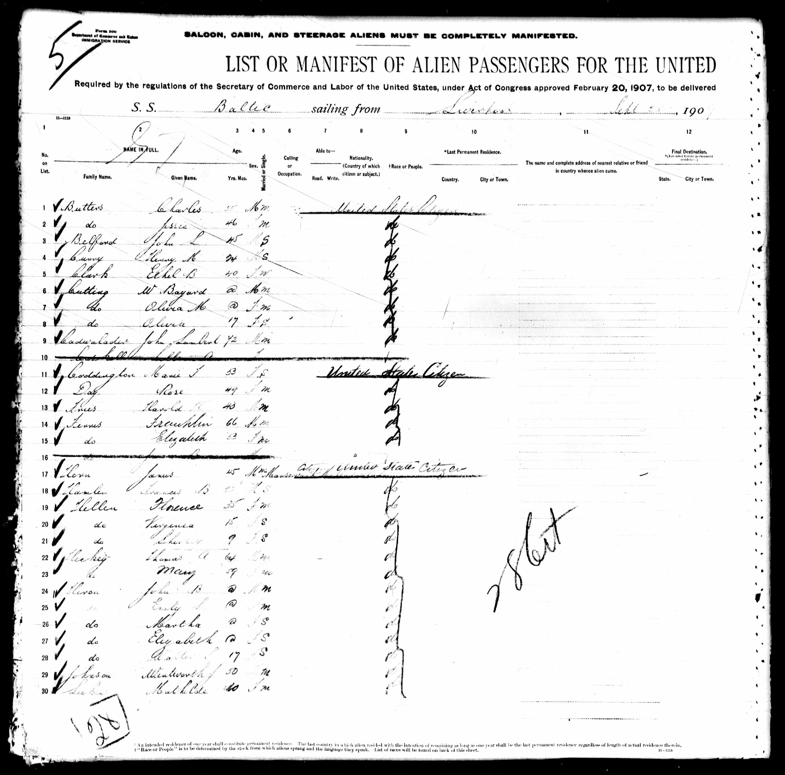 | Arrival | 1909 | New York, New York, United States of America | S.S. Baltic from Liverpool | ||||||||||||||||||||||||||||||||||||||||||||||||||||||||||||||||