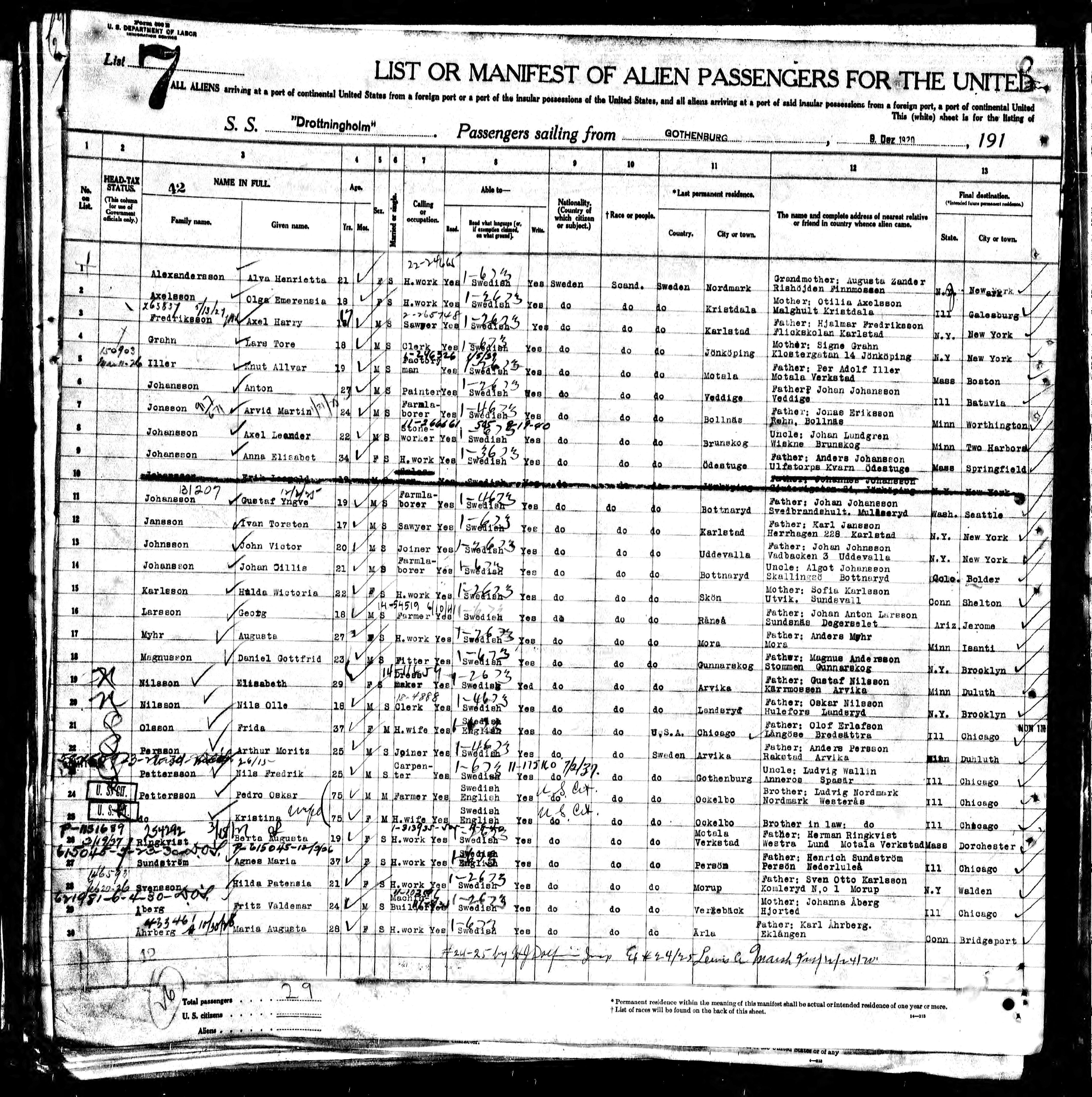 | Immigration | 20 Dec 1920 | New York, New York, United States of America | ||