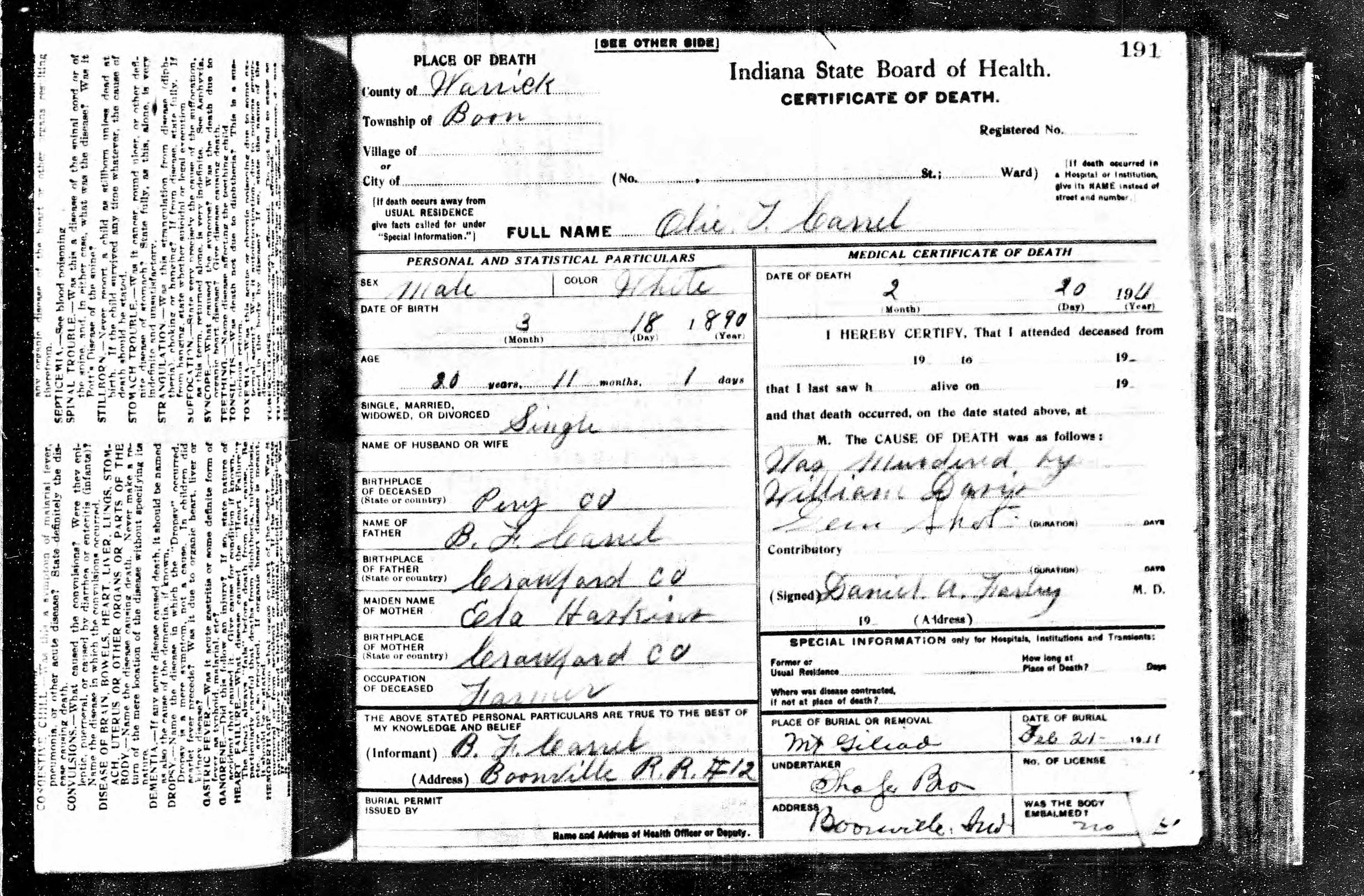 | Death | 20 Feb 1911 | Boon, Warrick, Indiana, United States of America | |||||||||||||||||||||||||||||||||||||||||||||||||||||||||||||||||||||||||||||||||||||||||||||||||||||||||||||||||||||||||||||