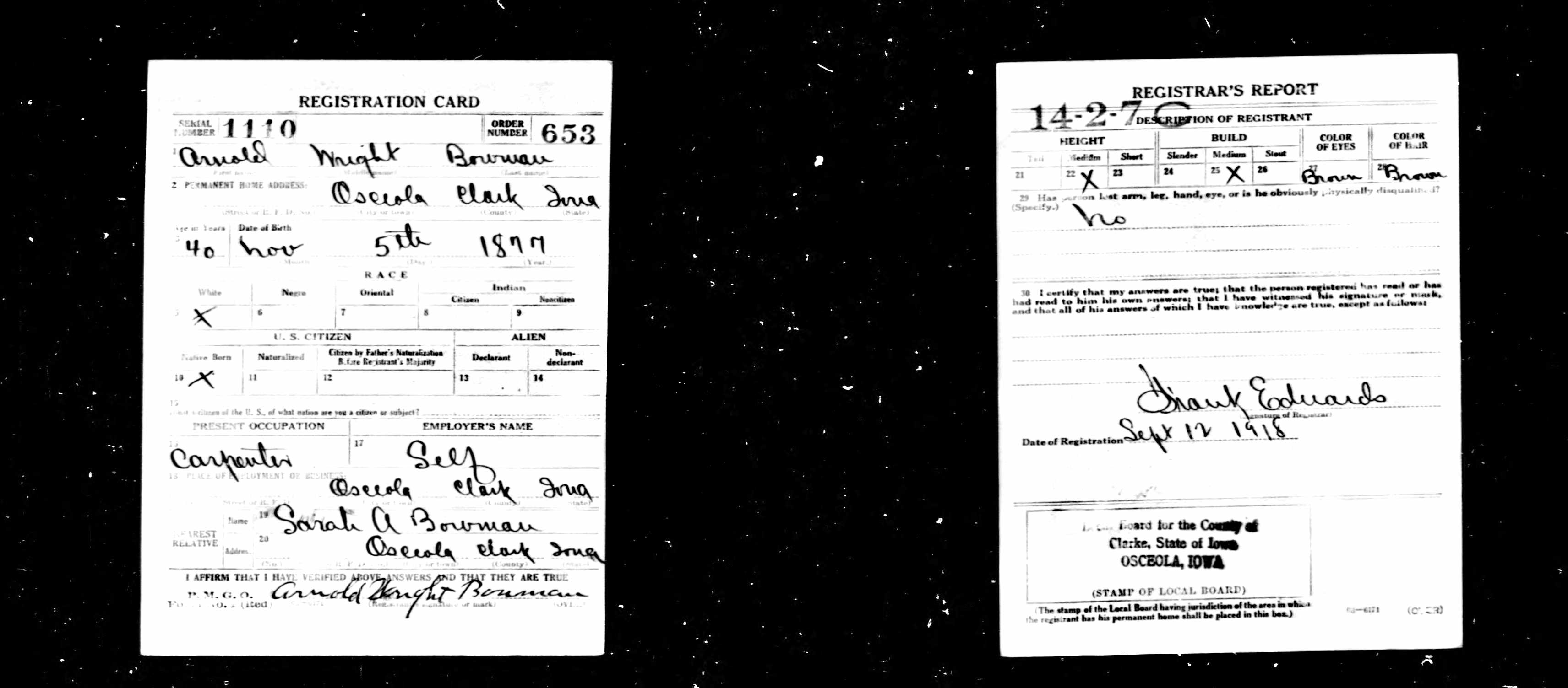 | Draft Registration | 12 Sep 1918 | Osceola, Clarke, Iowa, United States of America | ||||||||||||||||||||||||||||||||||||||||||||||||||||||||||||||||||||||||||||||||||||||||||||||||||||||||||||||||||||||||||||||||||||||||||||||||||||||