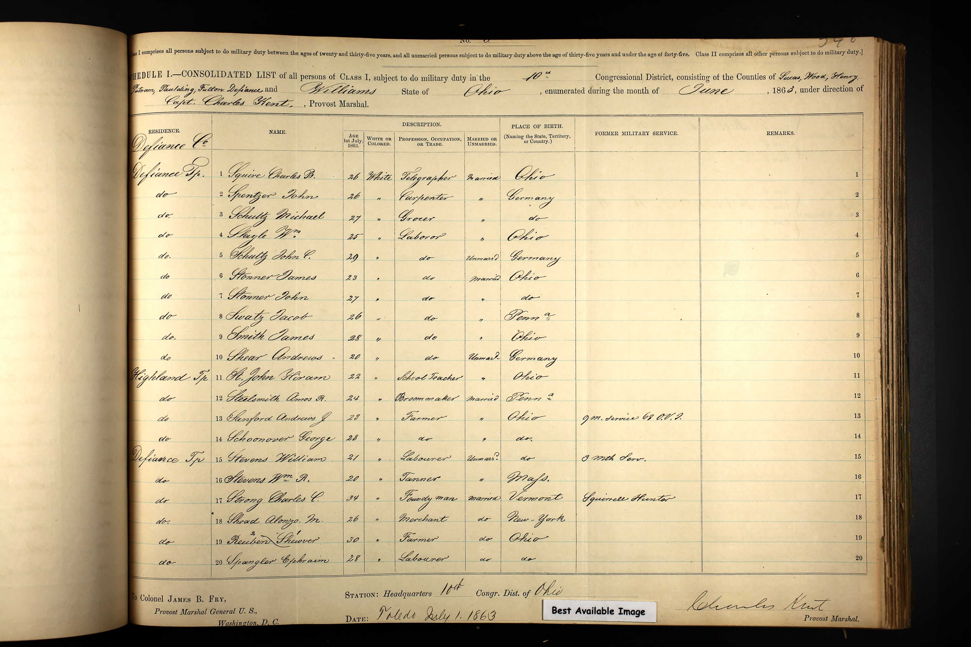 | Draft Registration | 1 Jul 1863 | Defiance, Defiance, Ohio, United States of America | |||||||||||||||||||||||||||||||||||||||||||||||||||||||||||||||||||||||||||||||||||||||||||||||||||||||||||||||||||||||||||||||||||||||