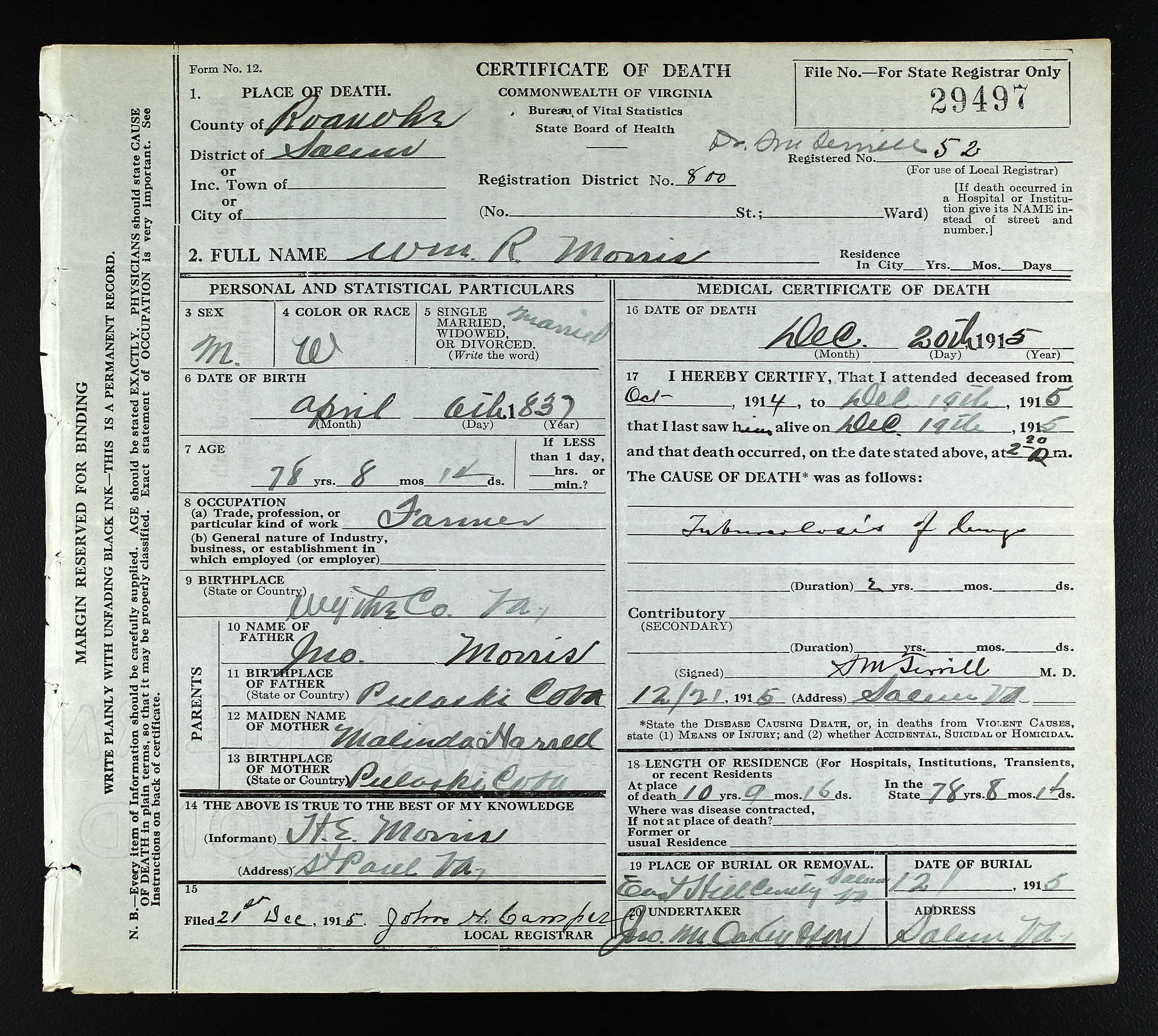 | Death | 20 Dec 1915 | Salem, Virginia, United States of America | ||||||||||||||||||||||||||||||||||||||||||||||||||||||||||||