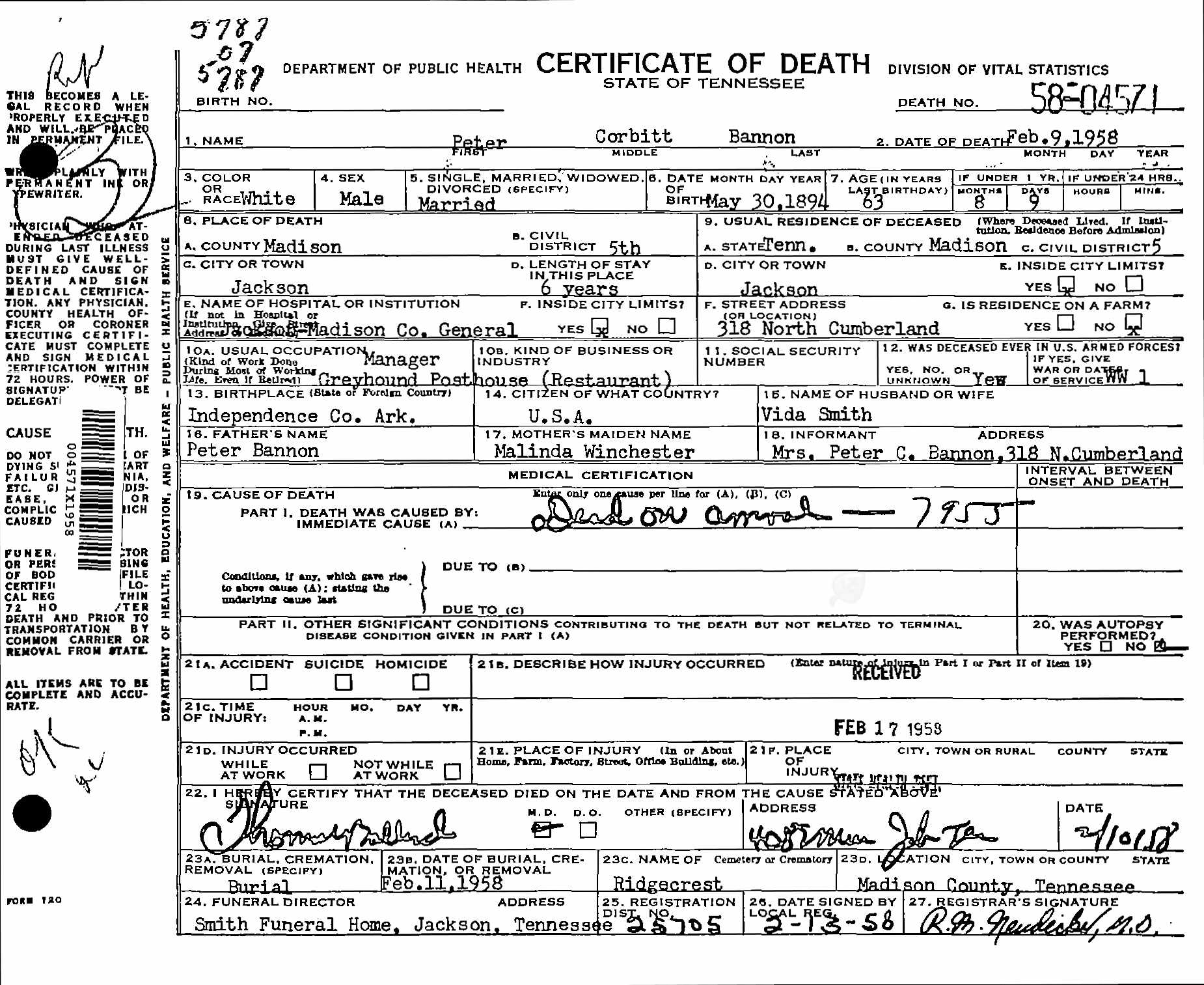 | Age at Death | 63 years, 8 months, 10 days |