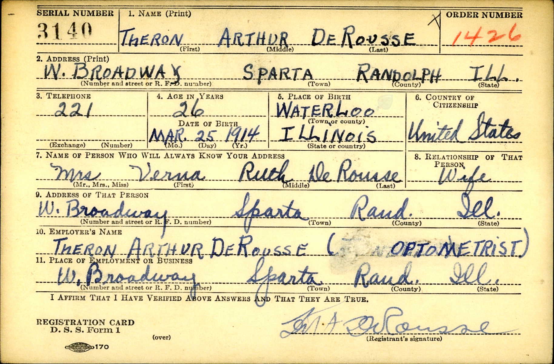 | Draft Registration | 16 Oct 1940 | Sparta, Randolph, Illinois, United States of America | ||