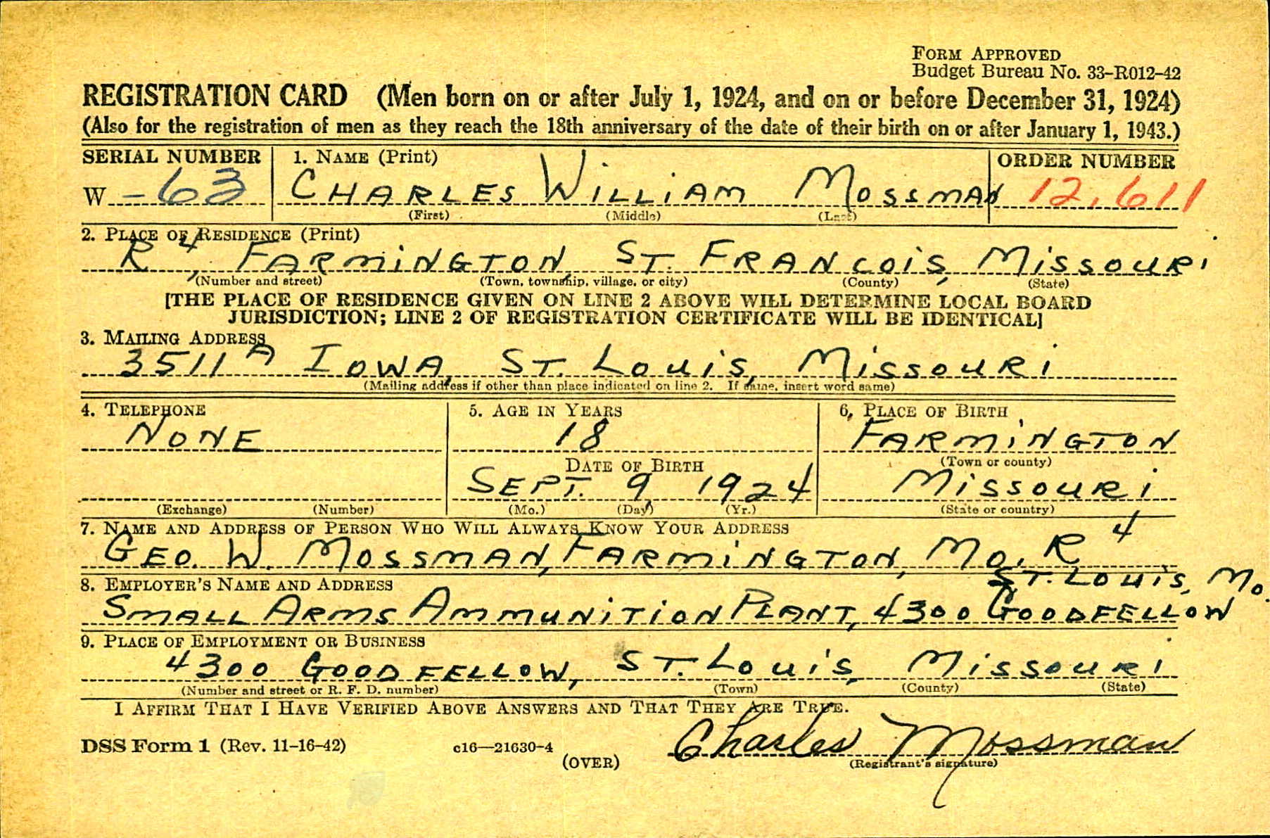 | Draft Registration | 21 Dec 1942 | Farmington, Saint Francois, St. Francois, Missouri, United States of America | |||||||||||||||||||||||||||||||||||||||||||||||||||||||||||||||||||||||||||||||||||||||||||||||||||||||||||||||||||||||||||||||||||||||