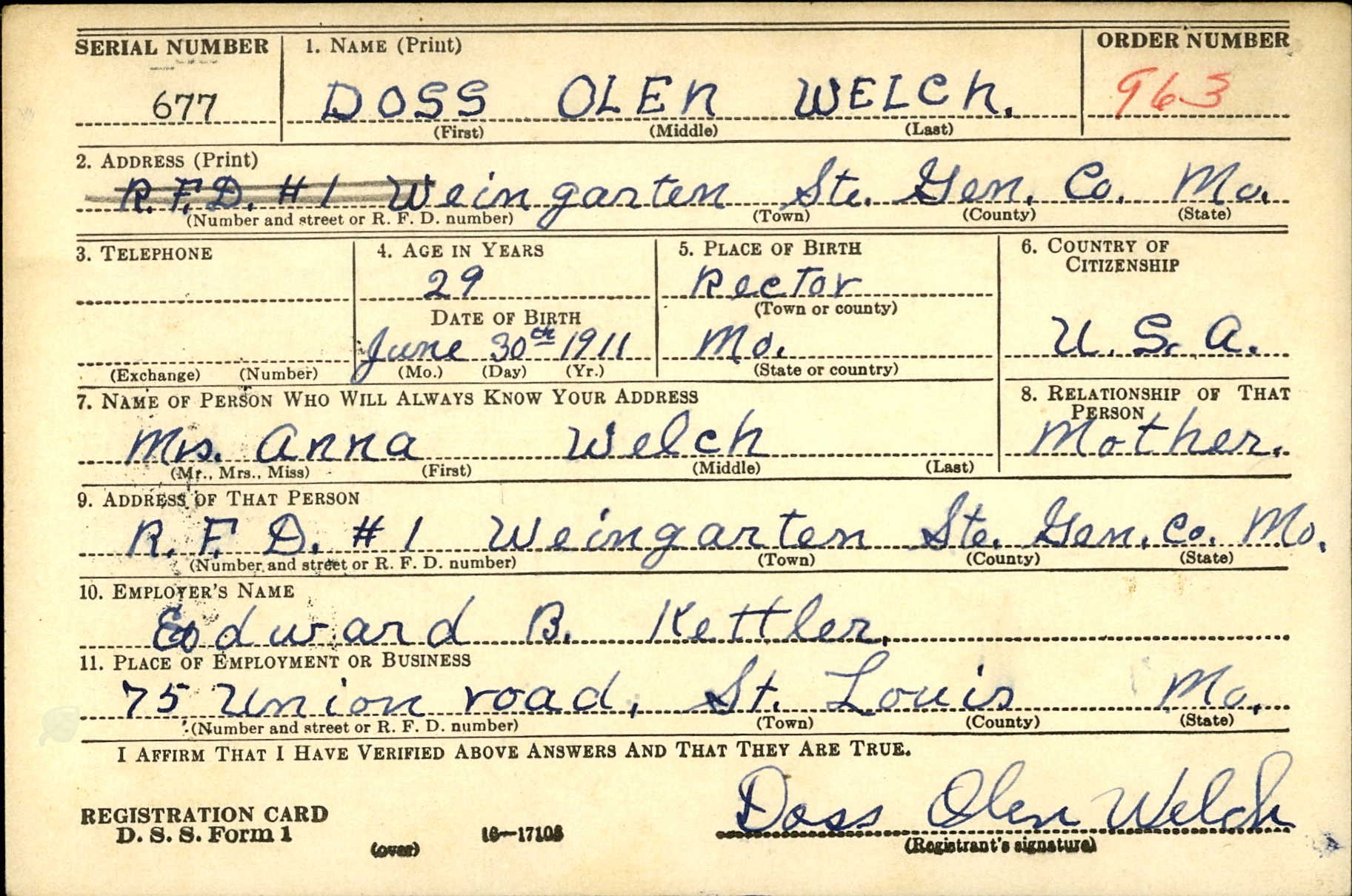| Welch, Doss Olen | 30 Jun 1911 | 22 Jul 1966 | ||